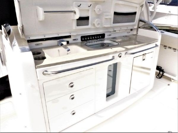 The vessel is a quad-engine 42-foot Boston Whaler with unmatched state-of-the-art features, making the flagship 420 Outrage a boat like no other. From the expansive bow with innovative seating galore, to the beautifully designed convertible helm and cockpit areas, to the gracious, well-equipped cabin with enclosed head, the 420 is a champion at onboard entertaining and pleasure cruising, whether close to home or way offshore. With so many inviting spaces to settle in for the day, this is the yacht you’ll want to enjoy with family and friends.