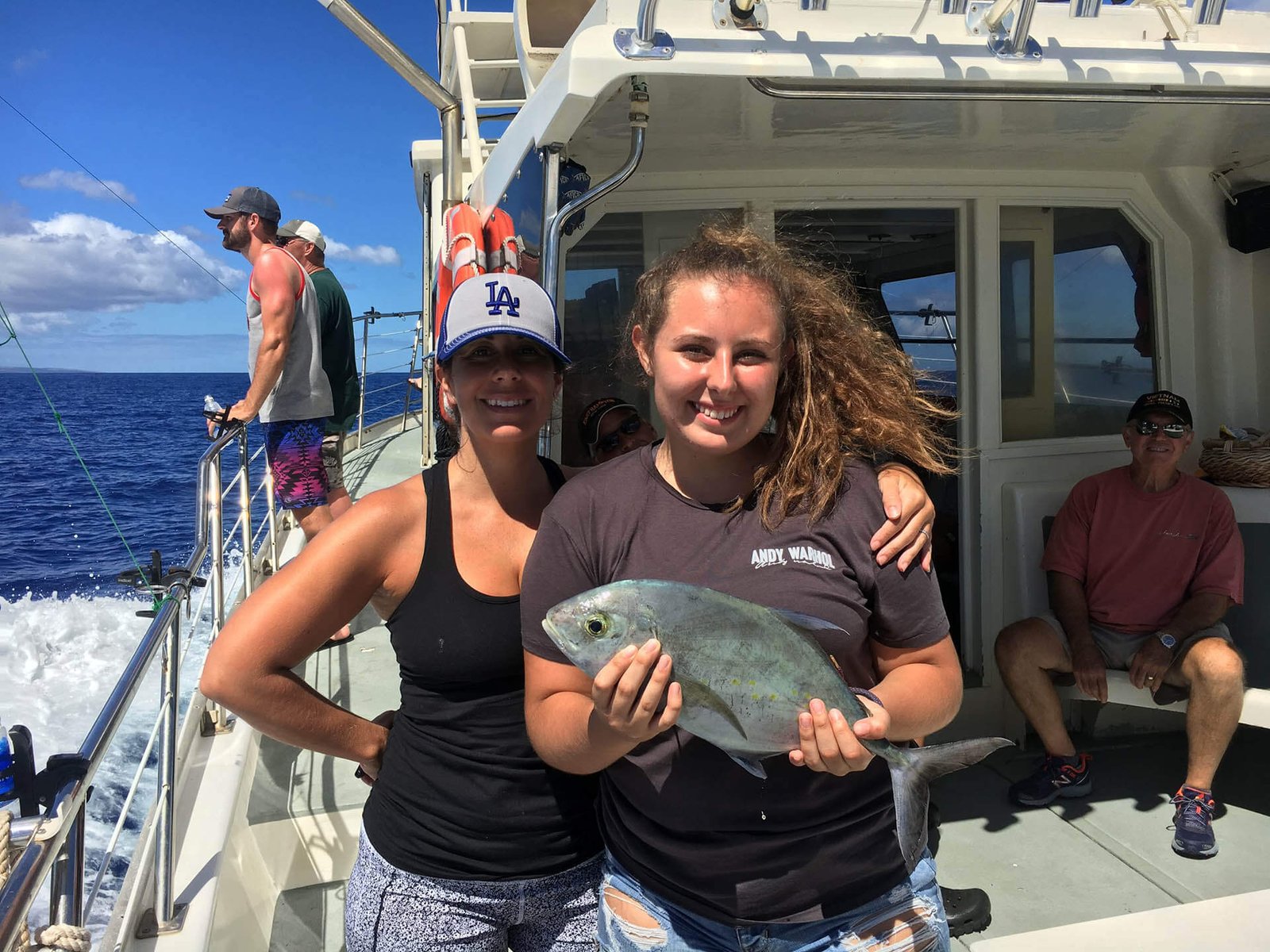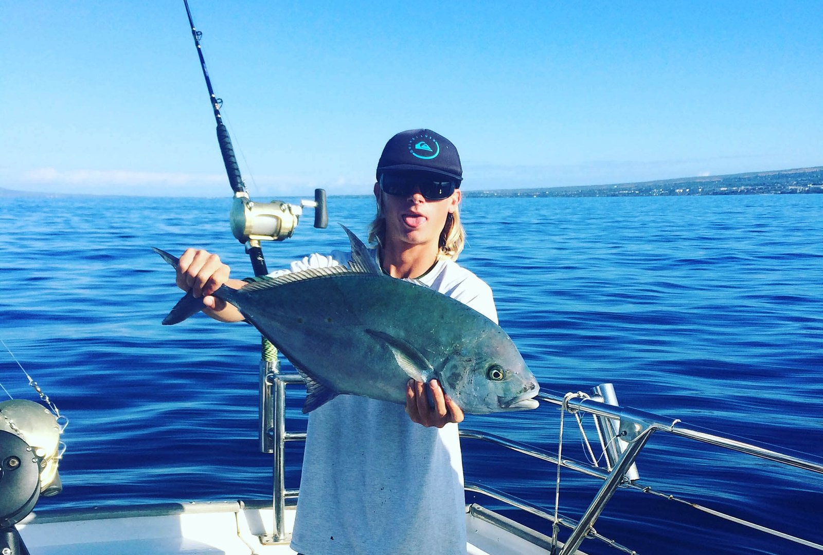 We feature full walk around decks with a large covered cabin, clean modern marine head (restroom), a new Garmin GPS, and Furuno colored depth fish finder. Double outriggers and Penn international Gold rods & reels (50’s, 80’s and 130’s). With a Pompanette 130 tournament series fighting chair.