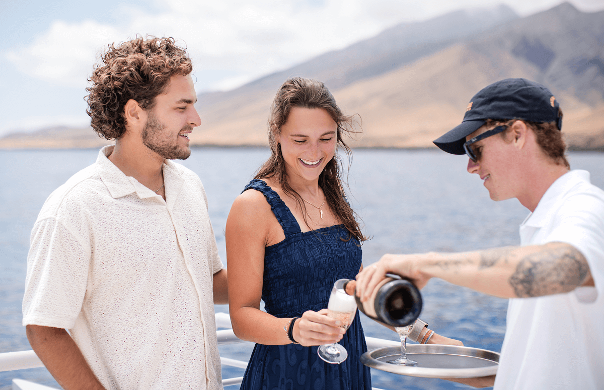 We offer luxury sailing, two snorkel spots (Molokini + Turtle Town), chef-prepared meals, and a 65-foot catamaran with a Top Deck upgrade—more than most tours provide.