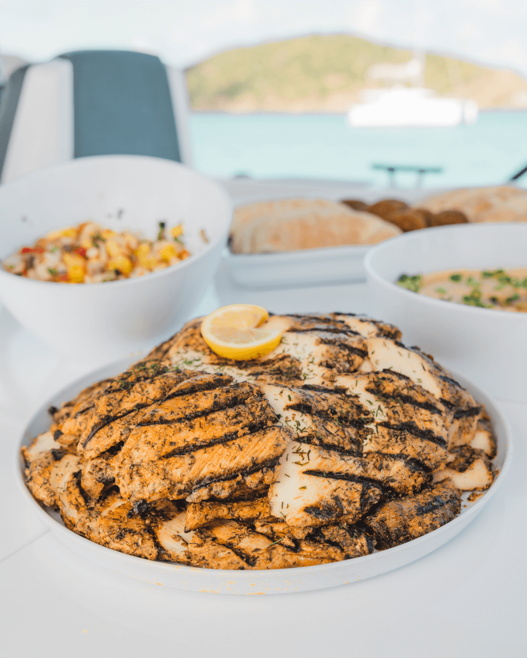 Gourmet picnic lunch on board